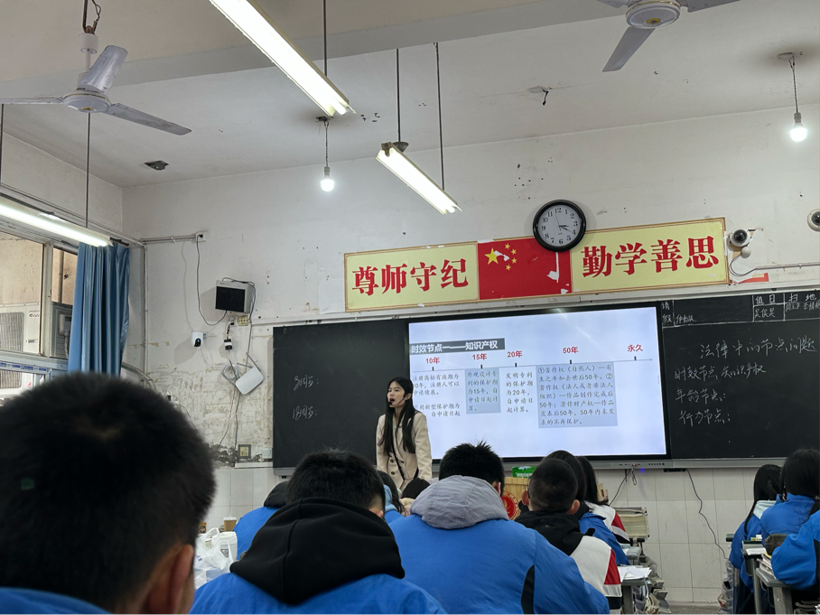 为更好地落实思想政治课立德树人的目标,提升复习备考质量,4月1日下午,我校高中政治教研组举行了主题教研活动,共研新课改下高中政治复习备考。本次活动由高中政治教研组组长裴冀青老师主持,全体高中政治组教师参与,分为教研课展示、课后评议交流、高三二轮复习备考策略交流探讨三个环节。本次教研活动在高三政治组安思静老师主题为《法律生活中的节点问题》的教研课中拉开了序幕。首先,安老师以生活中的法律案例引入课堂主题,讲解时间节点、年龄节点和行为节点的含义。随后,安老师围绕三个法律节点设计了三个探究活动。第一个探究活动中,安老师以时间轴的形式帮助学生区分知识产权的保护期限以及解决纠纷的多元方式的适用期限,通过小组讨论调动学生积极性。第二个探究活动中,安老师以高考真题情境为背景进行改编设问,引导学生思考不同年龄阶段的民事主体的民事行为效力,进而帮助学生对民事行为能力类型进行区分。第三个探究活动中,安老师以时政热点电影《哪吒》为背景,引入山寨电影的侵权行为,接着以表格的形式引导学生总结民事权利和义务的具体内容,再以2024年江苏高考真题进行强化训练。探究活动设计切入点新颖,重视与时政热点相结合,体现思想政治学科特点,注重答题思路和技巧总结,突出学科核心素养的培养。教学过程运用自主学习与小组合作学习等多种方式突出学生的主体地位,课堂氛围活跃。![]()