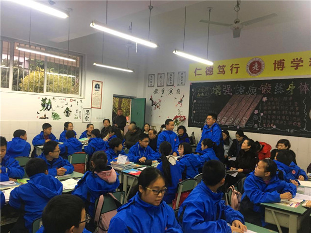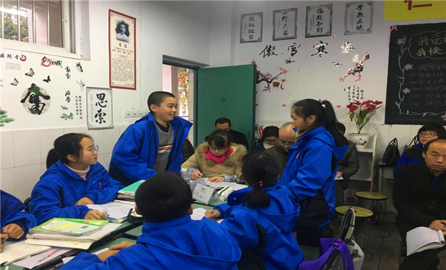 11月29日上午,我校高中英语组教师走进初中英语课堂,与初中英语组教师开展了“五环四互”教学模式探索联合教研。“五环四互”教学模式由县教研室主导,县英语名师工作室主推,在初中英语课堂中已全面推开并实施多年,老师们在多年的摸索中,结合学生实际进行了一系列改革和创新,小组建设和合作学习已基本趋于成熟。此次联合教研旨在向高中英语组的老师们征求意见和建议,并将该模式推广运用到高中英语课堂教学中,创新课堂结构,形成独到的教学方法,从而提高本校英语教学质量。