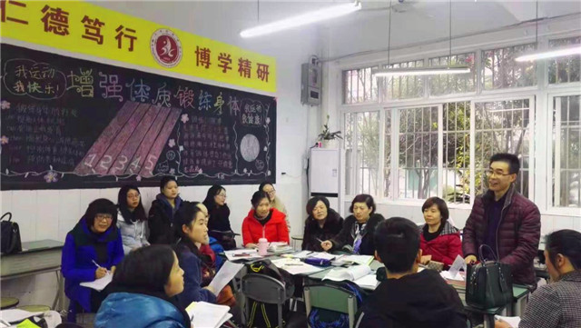 当天上午第二节课,李文君老师在七年级12班为参研教师奉上了一堂精彩的听说课,展现了深厚的教学基本功和很强的课堂驾驭能力。课堂上,李老师引导孩子们进行了大量的词汇及句型操练,孩子们训练有素,通过自学互助,小组合作学习,质疑互究,课堂展示等活动快速掌握了本课的重难点。李老师也对其学习效果进行了检测和评价。课后,老师们对教研模式进行了热烈的探讨,交换了意见。初中英语教研组组长冯梅老师对高中教师进课堂表示了欢迎,介绍了在“五环四互”教学模式推广之初遇到的疑惑与困难,分享了小组建设及模式现行情况。初中英语名师工作室首席名师杨锐老师对“五环四互”教学模式向与会老师进行了详细解读,明确了老师和学生在新课堂模式中的定位。高中英语组教研组长邓林老师对此次联合教研作了总结发言,他认为,教无定法,但高效且学生参与度高的教学模式改革迫在眉睫,高初中英语老师们定将从此次教研活动中总结经验,结合所在班级的教学实际,将“五环四互”教学模式的精华手段用于自身的教学实践中,以期提升教学质量。