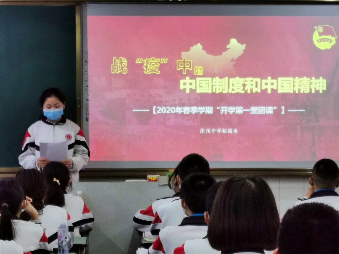 4月20日晚,蓬溪中学开展了“2020年春季开学第一堂团课——战‘疫’中的中国制度和中国精神”。本次团课是2020年春季开学复课以来的第一堂团课,在经历了型冠状病毒肺炎疫情影响后,同学们对于生命、对于“爱国情怀”、对于“中国精神”有了不一样的领悟。![]()