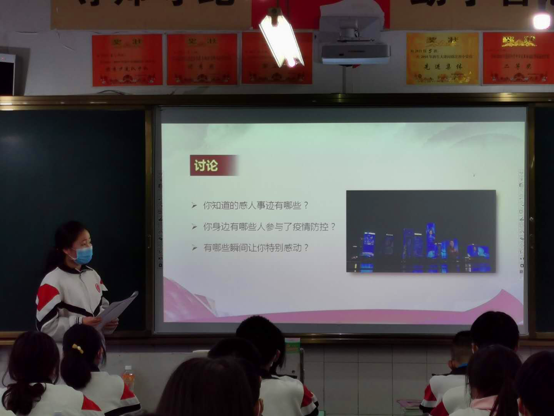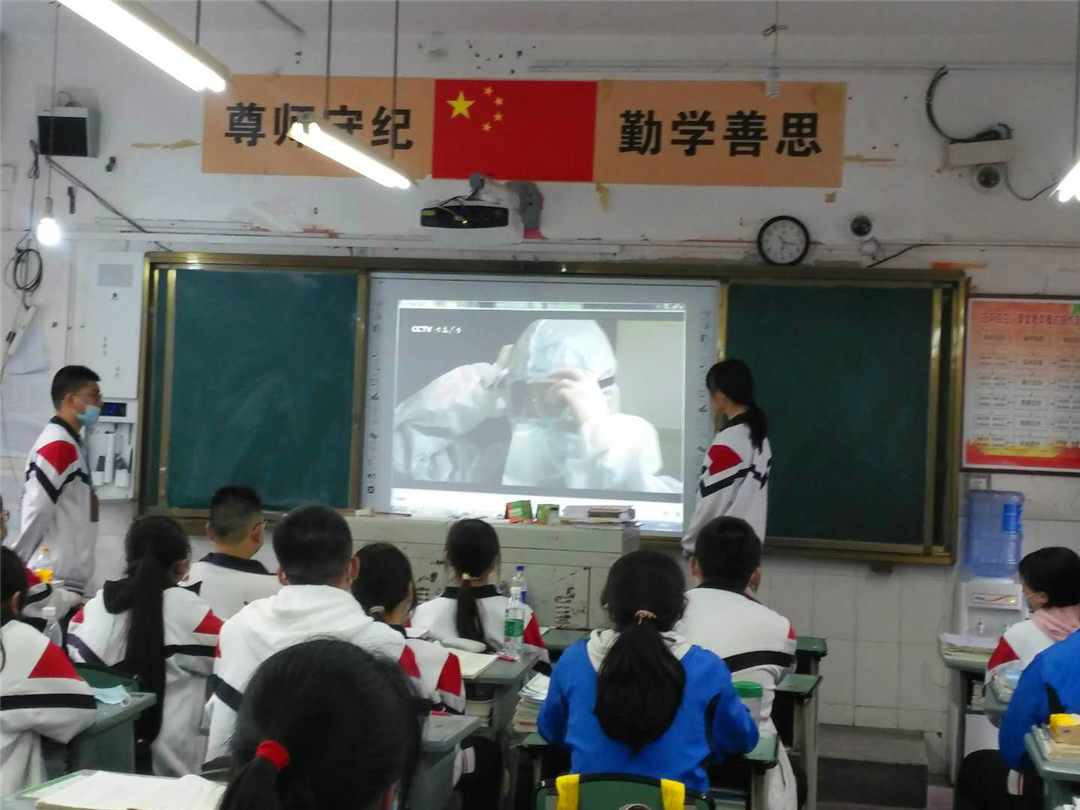 在课上,全校各支部辅导员或支部书记首先利用PPT向同学们呈现了此次抗击疫情过程中的一些图片及报道,包括疫情发生后国家的果断应对、青年志愿者无私的奉献等,并观看了视频“最美逆行者”,让同学们感受医护人员的崇高信仰和勇于奉献的决心,不少同学在观看视频后流下了感动的泪水。随后,各支部书记向同学们讲述了此次抗击疫情中的一些感人事迹,如钟南山院士在新年到来之际,独自乘坐无座动车前往武汉,一位母亲在儿子的哭泣声中踏上援鄂医疗队车,以及我们身边的最美逆行者——独自一人驾车行驶1200多公里前往武汉支援的沙湾区人民医院医生黄维的故事。讲授者通过讲述这些英雄的故事,让同学们明白什么是无畏、什么是奉献、什么是“中国精神”。最后,授课教师还让同学们写下自己本节课的感悟,同学们纷纷拿出笔,将本节课的所思所想记录了下来。