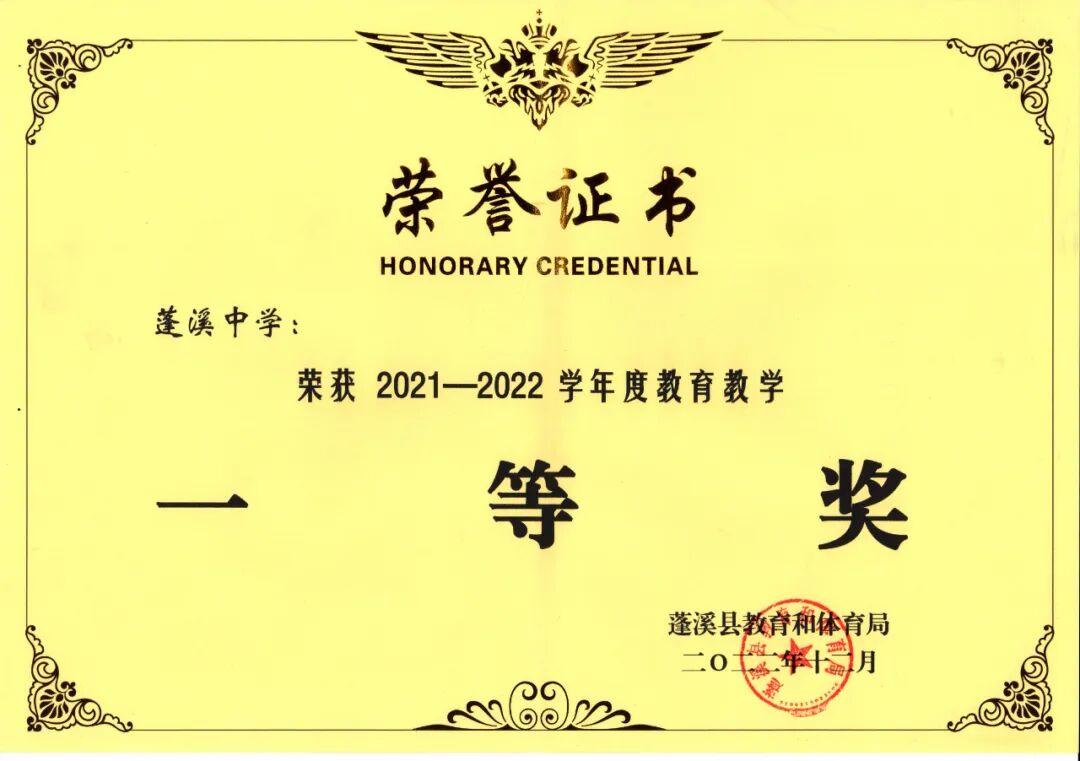 祝贺蓬溪中学又获两项殊荣!