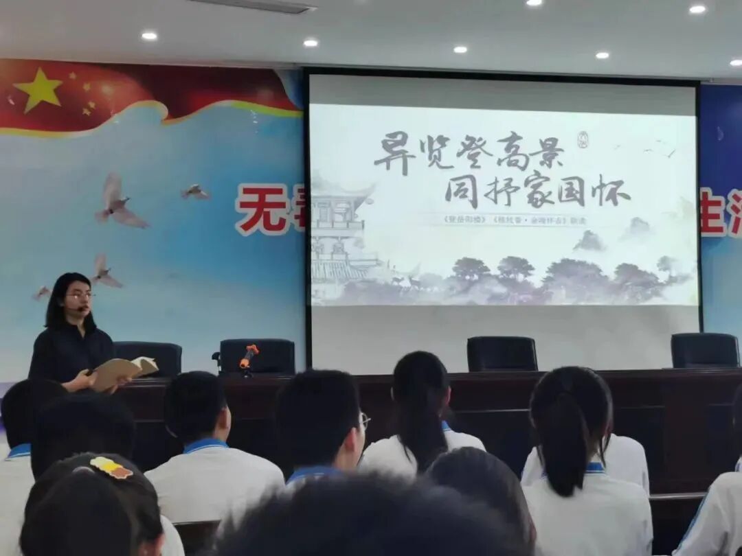 蓬溪中学高一年级谢海霞老师首先进行了题为“异览登高景,同抒家国怀——《登岳阳楼》《桂枝香·金陵怀古》联读”的公开示范课。围绕“审美鉴赏与创造”这个语文学科核心素养,采用“任务群”学习的语文学科典型学习方式,在“导学进程”中设置“情境任务”:学校文学社将开展“异览登高景,同抒家国怀”的诗词研讨会,引领我们感受文学作品中登高赋远的魅力。随后通过已学的《观沧海》《望岳》两首诗探寻出登临诗的一般创作思路:一、登临何时何地?二、目见何景何物?三、生发何感何怀?四、何事感斯怀?在“学习进程”中根据登临诗创作思路设置安排了四项任务,通过多类型朗读、任务驱动的方式带领同学们共同品鉴了登临诗的魅力,感受了诗人的家国情怀,谢老师与学生互动频频,语言简洁,循循善诱,充分调动了学生参与课堂的积极性,给我们展示了一个充满活力又高效的课堂。评课交流环节,谢海霞老师分别从自己的教学目标、过程设计和最终呈现的教学效果等方面作了详细而诚恳的介绍与自评。随后,高一语文备课组组长敬小刚老师对谢海霞老师这一堂公开示范课作出点评:他高度评价了谢老师独具匠心的教学设计、充分细致的课前准备和沉稳大气的课堂表现。整堂课充分展现了上课教师深厚的学养,达成了提升学生语文核心素养的教学目标,让听课教师们受益匪浅。![]()