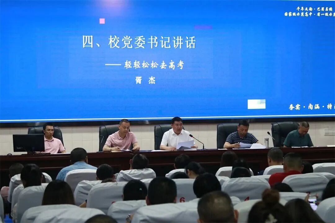 最后,学校党委书记胥杰从“科学作息、基础回归、时间高效利用、应试心态、运动与合理的营养”等方面对全体教师提出了“以生为本”的基本要求;从“共性问题,师生共探;个性问题,一生一策”角度提出了问题导向的基本路径;从“严格的日常管理、密切的家校联系、耐心的全程陪伴”角度提出了落实严管厚爱,安全高考的细节思考。他勉励全体同仁攻坚克难,统一思想,凝心聚力,心往一处想,劲往一处使,最后30天、最后一公里全力以赴迎高考,再创蓬中新辉煌。
