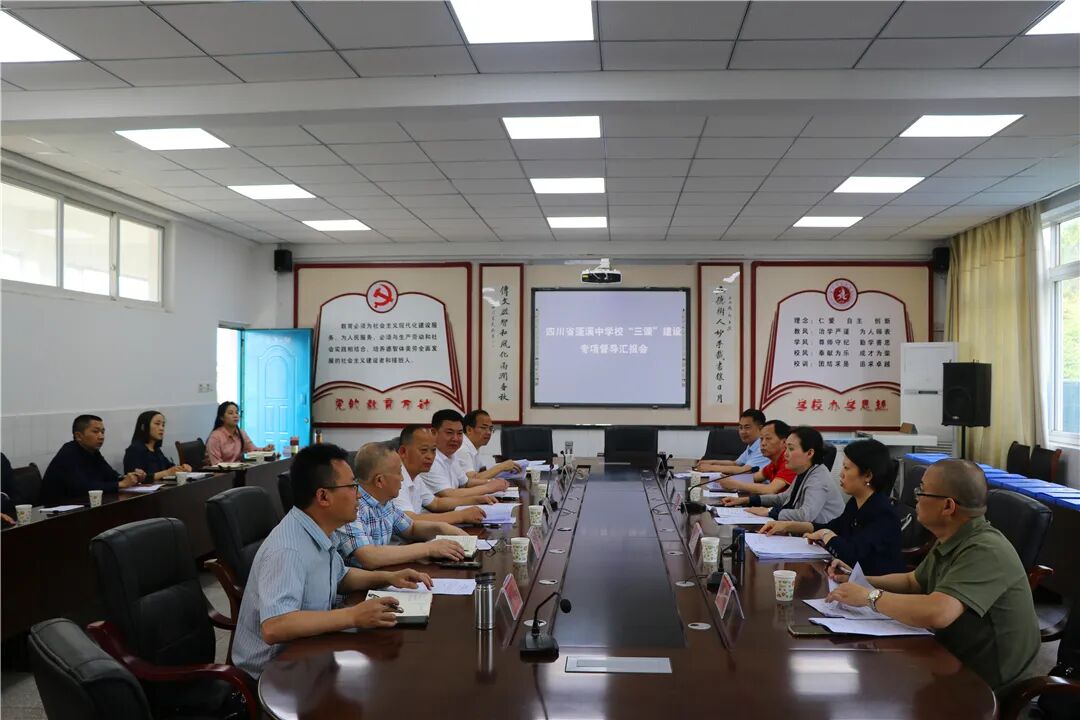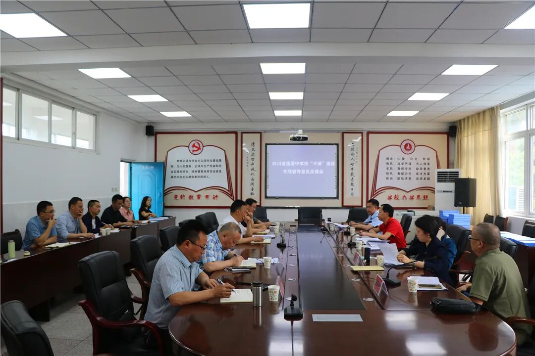 为全面实施素质教育,推进新高考综合改革,加强学校学术引领和内涵建设,推动学校课程建设、课堂建设和课题建设,促进学校高质量发展,5月24日,遂宁市人民政府教育督导委员会督导二组组长、市教体局总督学卢静一行在县教体局局长杜志凌等领导的陪同下,莅临蓬溪中学督导“三课”建设工作。蓬溪中学党委书记胥杰、校长杨加林等领导作工作汇报。