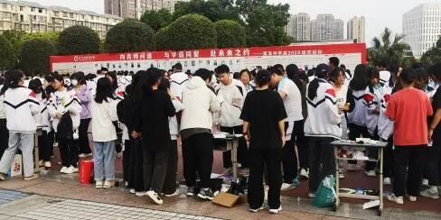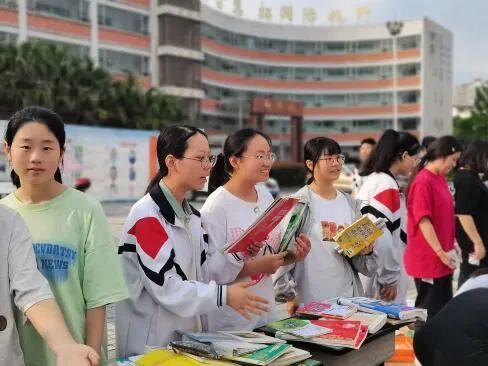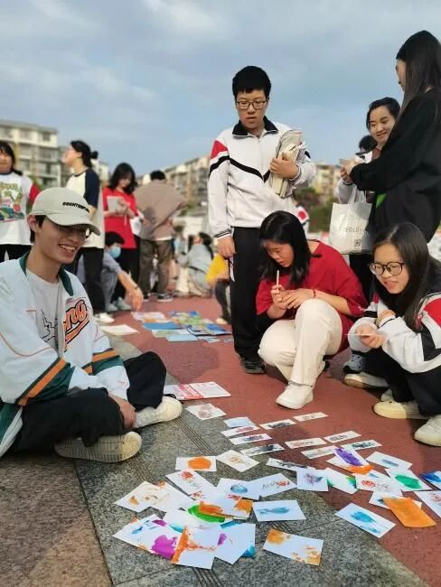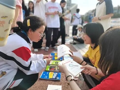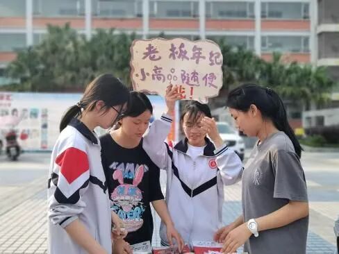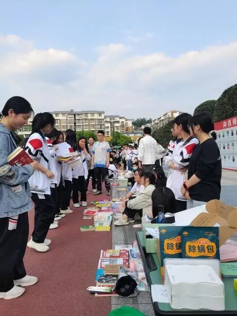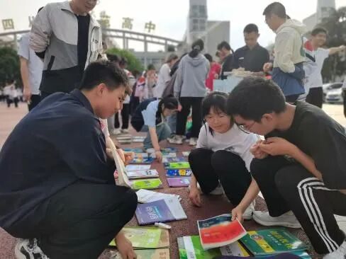 5月24日(周三)下午17点正是高三学子结束了一次模拟考的时候,校前广场已经摆好了30个“摊位点”,仍不能承受同学们的热情,更多的同学选择了“地摊售卖”,现场火爆非凡。