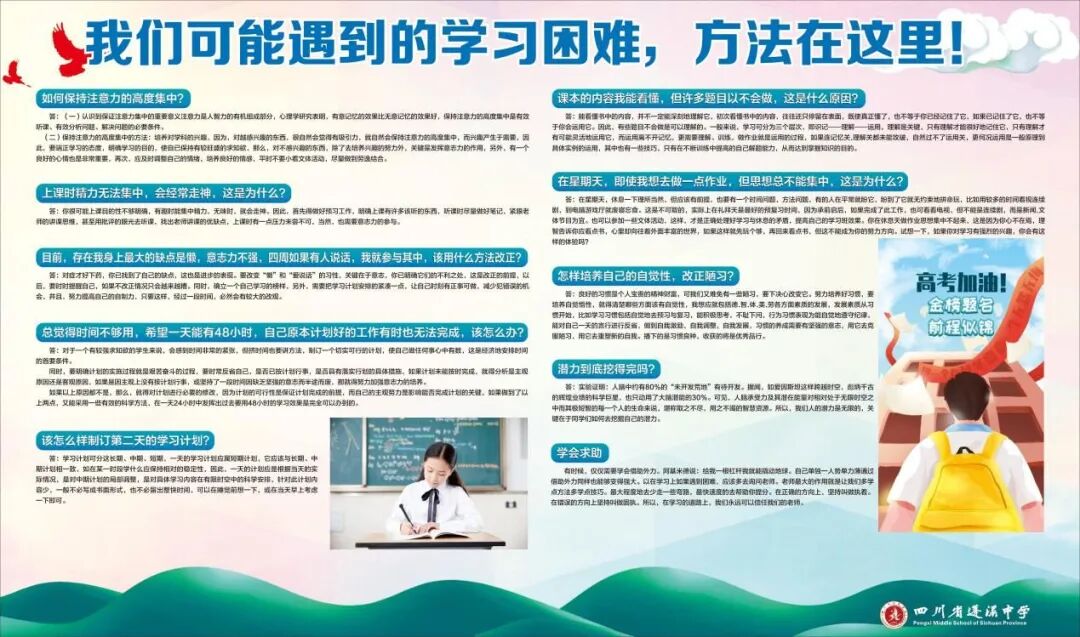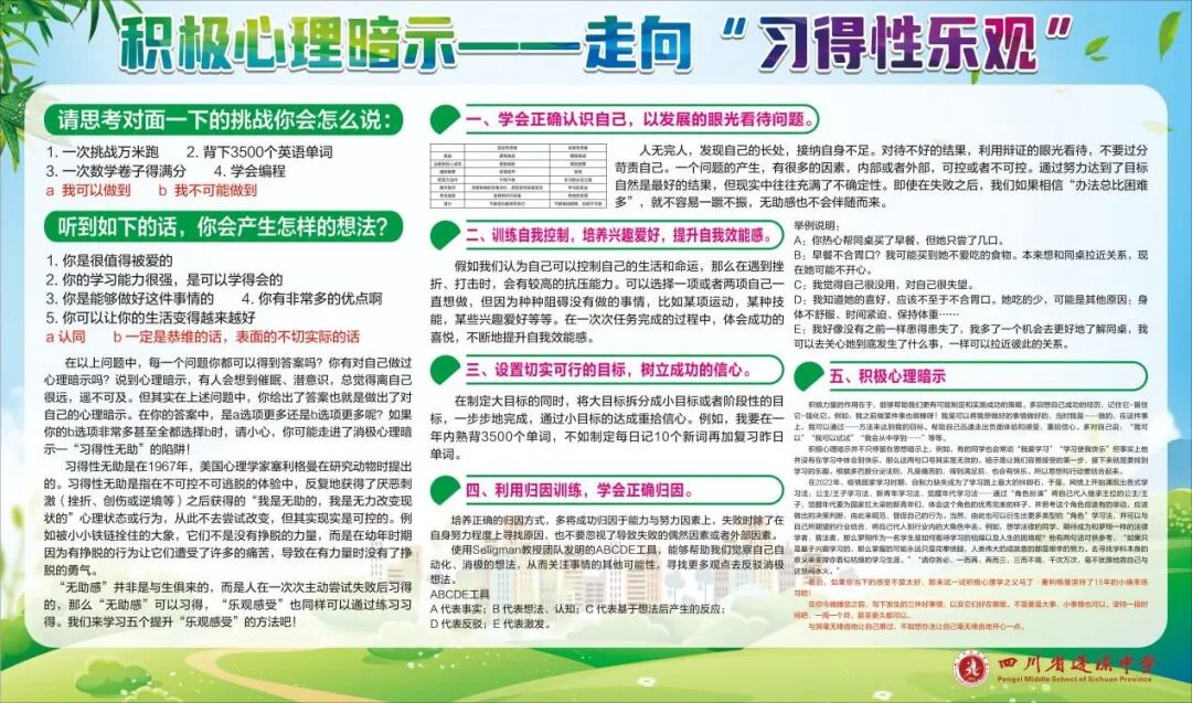5月22日周一,走进校园的同学们会看见悬挂在校园各角的心理宣传横幅以及活动预告海报。蓬溪中学的心理健康周活动正在拉开序幕。