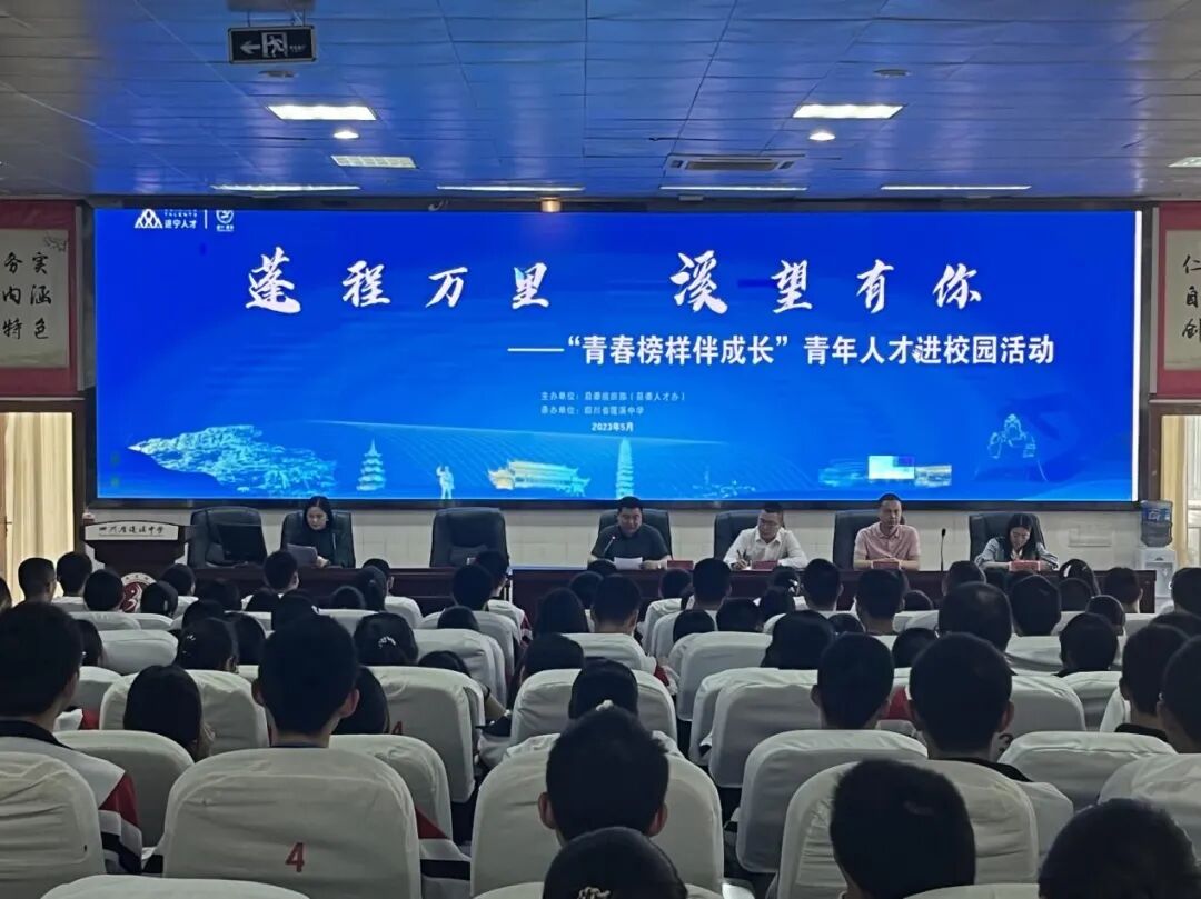 让花成花让树成树,让每个人都成为最好的自己,是学校对学子的祝愿。5月25日(周四)下午14:30,由蓬溪县委组织部(县委人才办)主办蓬溪中学承办的“蓬程万里 溪望有你--‘青春榜样伴成长’青年人才进校园活动”在蓬溪中学学术报告厅开展。本场活动由德育处副主任曹敏主任主持,蓬溪中学校党委书记胥杰书记开场致词,希望同学们在分享会中借鉴别人的成长,规划自己的道路。