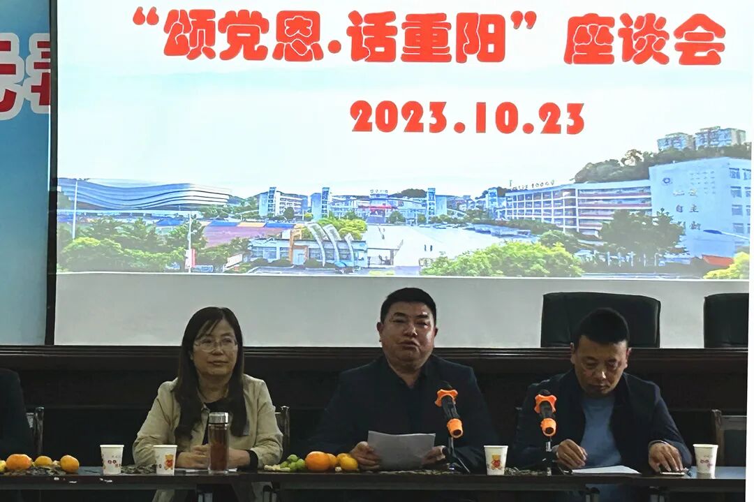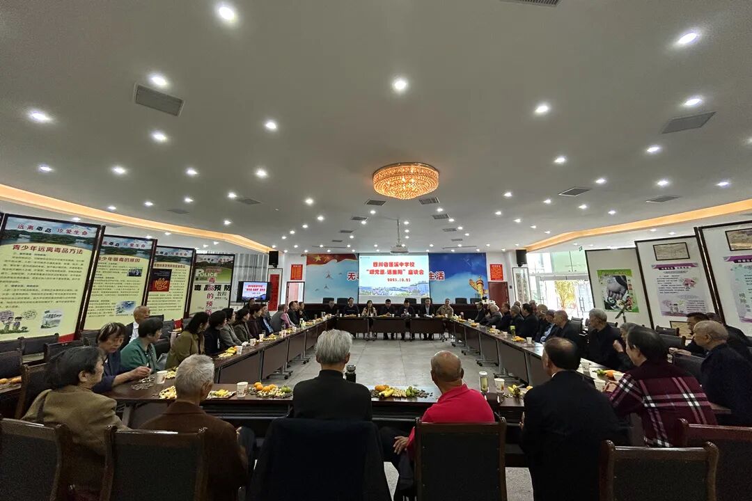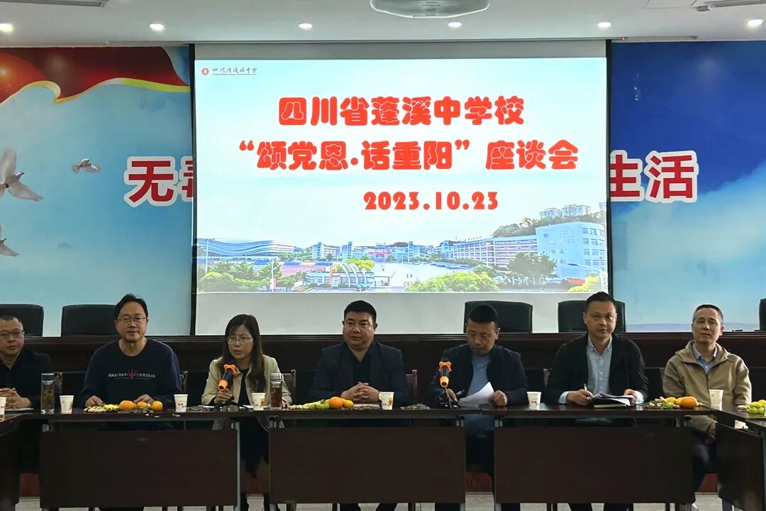 金菊吐蕊,丹桂飘香;岁岁重阳,今又重阳。为感谢曾经躬耕杏坛、春风化雨的退休教师们为学校发展做出的卓越贡献,发扬他们教书育人的优良传统,进一步营造良好的育人氛围,10月23日上午,我校隆重举行“颂党恩·话重阳”退休教师座谈会,大家欢聚一堂,重温拼搏岁月,追寻奋斗足迹,共谋学校发展。会议由校长杨加林主持,退休教师、原蓬溪中学副校长黄开发,原党委副书记冯清华等前辈参与此次座谈会。
