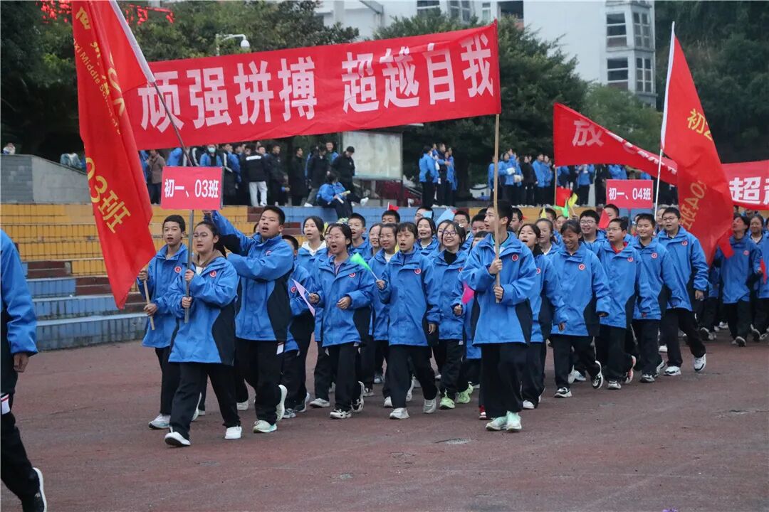 少年驰骋赛场,青春激情飞扬。为丰富校园文化生活,增强学生体质,培育德智体美劳全面发展的时代新人,11月29日上午7:30,蓬溪中学2023年冬季运动会开幕式在运动场隆重举行。在灿烂的晨光中,所有教师和同学都怀着激动的心情期待着这场校园盛事!开幕式由学校副校长蒋洪主持,全校6000余名师生参加开幕式。