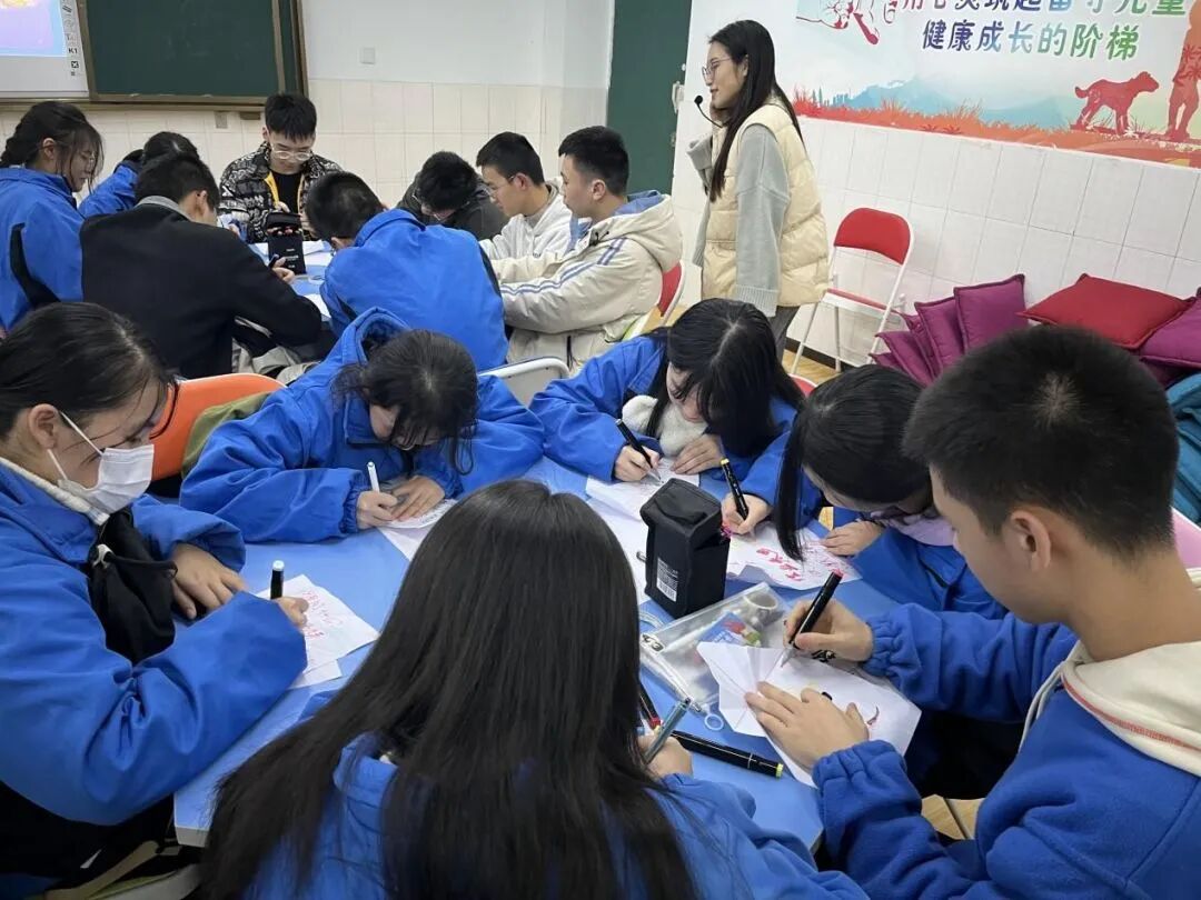 本次团体心理活动通过“松鼠与大树”“让压力飞—叠纸飞机”“戴高帽—我欣赏你”等环节来为学生减压赋能。在活动中,易老师让学生感受到了什么是压力,压力从何而来,我们又该如何去面对压力等。同学们脸上洋溢着笑容,“开心”“放松”“收获满满”这些词出现的频率最高,一些同学表示自己心定下来了,会直面接下来每次考试的挑战。