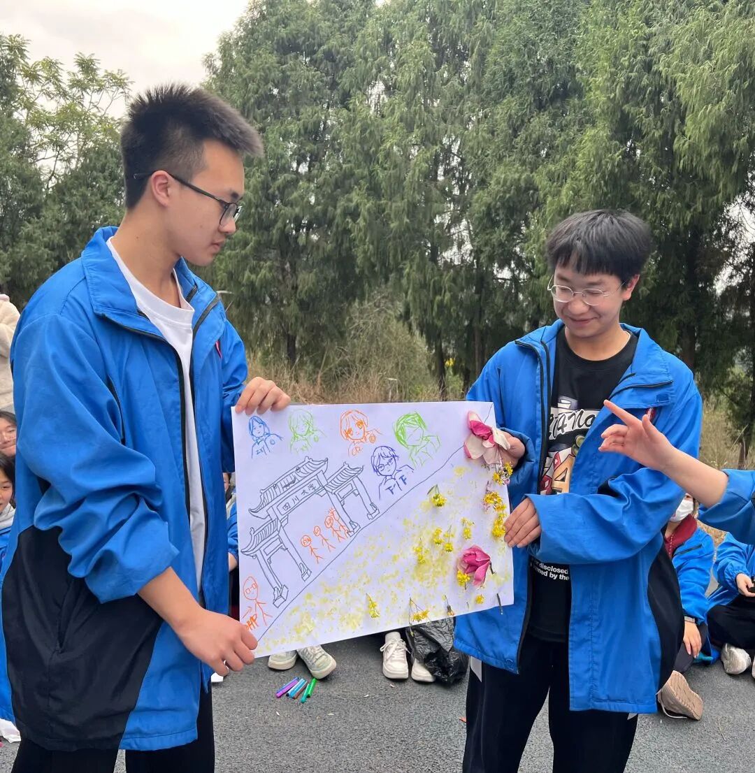 本次活动要求高三同学们团结协作,活动场地在凤凰山公园。团体心理辅导曹老师将场地划分为6个区域,以班级为中心,多人合作完成一幅“绘家乡,描未来”的展示图。每个同学都构建着自己印象中的家乡。每一幅画都是一个故事,无声的诉说着自己内心里丰富的世界。随着在画上的涂抹,学生的情绪也在一点一点的释放出来,负面情绪也能够得到清理和宣泄。