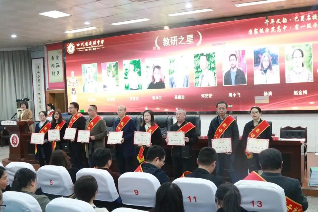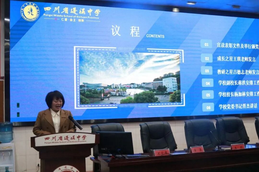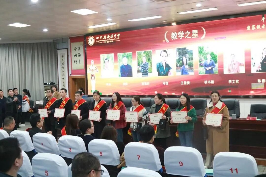 教乃研之基础,研乃教之利器。为进一步加强学校的规范化管理,提升学校办学质量,不断助推学校在学习与研讨、改革与创新中办人民满意的教育,3月21日晚,蓬溪中学在学术报告厅召开了以“教以共进谋发展 研以致远迎华诞”为主题的2024年上期教学科研工作会。学校全体行政领导、年级主任、年级助理、支部书记、教研组长、备课组长、部分优秀教师以及教务处、科研室全体人员等参加会议,会议由刘艳主任主持。大会对获评“成长之星”“培养之星”“教学之星”“教研之星”“优秀教研组长”的教师进行了表彰,围绕本期教学、教研、科研、师培等工作进行了研讨和部署,为学校后期教科研工作的开展指明了方向。