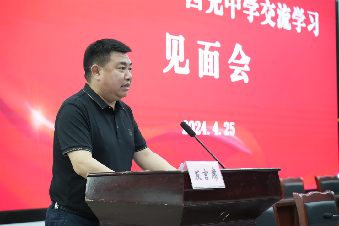 西充中学校长董文军主持见面会,与会人员观看了西充中学校庆宣传片。董文军强调,西中与蓬中地缘相近、人缘相亲、校缘相投,早已建起深厚的情谊,此次交流活动使得两校之间的关系更加亲密。西充中学党委书记杨明致欢迎辞,他对蓬溪中学的来访表示热烈的欢迎。两校办学历程相近,办学规模相当,他期待与蓬溪中学携手共进,畅叙发展,推动双方教育事业迈进更辉煌的百年新篇章。