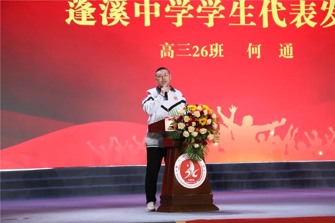 昨日的注脚,是风云变幻,是时光沉潜;今天的歌声,是历史注脚,是万里长卷。今天,我们齐聚一堂,共同庆祝自己的节日,为即将高考的勇士送上最热烈的祝福。赓续百年光荣传统,继承发扬五四精神,与新时代同向同行,与新征程同频共振,为蓬中百年华诞献礼!