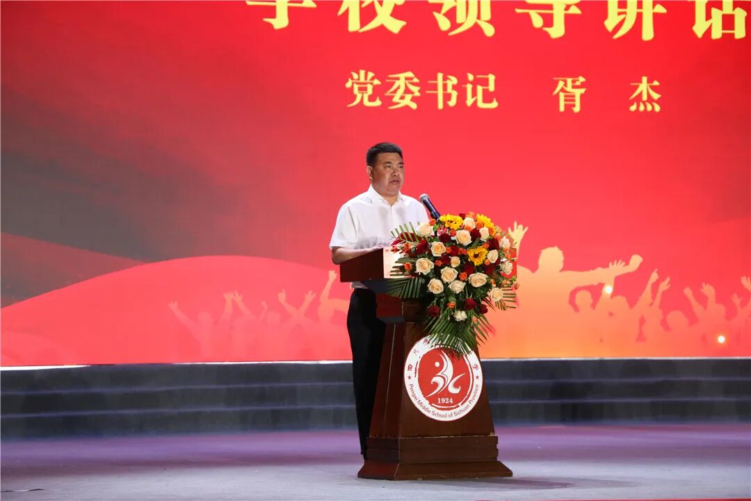 随后,学校党委书记胥杰作了掷地有声、铿锵有力的晚会致辞。胥书记在致辞中向全校青年提出三点希望:坚定理想信念,追求青春梦想;激扬奋发力量,练就青春本领;锤炼品德修养,践行青春誓言。他希望广大青年用智慧去开创未来,用勇气去追逐梦想,用汗水去浇灌希望,以自己的实际行动谱写青春华章,献礼蓬中百年华诞。最后,他再次祝青年朋友们节日愉快,祝初三、高三学子梦想成真,心想事成,未来光明璀璨,祝文艺演出圆满成功!