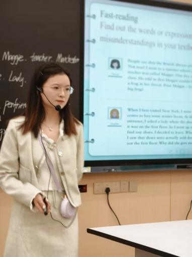 陈诺老师以其独特的教学风格和深入浅出的讲解获得了在场师生的一致好评。她通过论坛巧妙地引导学生主动思考,讲解俚语的字面意思和深层次意思,掌握文体特征,复述不同英语场景,了解英美不同的表达方式,更进一步让学生学会多渠道学习英语。课堂上,学生积极参与讨论,分组进行了角色扮演来巩固和加深英语不同俚语的表达,培养了学生的语言能力、学习能力和文化意识,充分体现了以学生为中心和素质教育的理念。