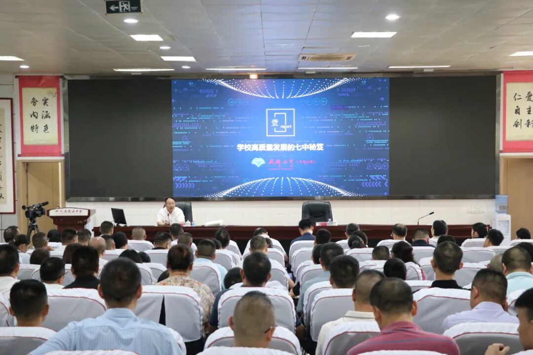 8月24日下午,县教育管理干部能力提升培训在蓬溪中学学术报告厅顺利举办,市教育局副局长钱春红主持活动,成都七中党委书记易国栋担任主讲专家,带来两场精彩的专题授课。