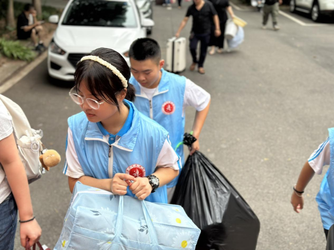 为助力新生快速融入校园生活、开启愉快的中学时光,学校领导统筹部署,校团委精心组织了一支热情饱满、主动担当的志愿者队伍,为新生提供全方位、暖心化的志愿服务。清晨 7 点半,志愿者们已整装待发 —— 他们身着统一服饰,精神昂扬地分布在校园各处,用最热忱的笑容迎接每一位新生与家长。从校门口到教学楼的指引路径,从教学楼到宿舍的衔接服务,处处都活跃着他们忙碌而有序的身影。