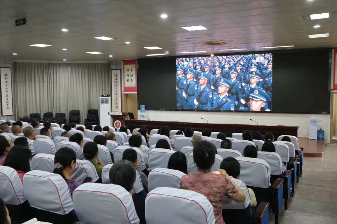 报告厅内,教职工们早早有序落座,目光灼灼望向屏幕,在场教师无不心潮澎湃,不少人眼中泛起泪光——这既是对祖国强大的自豪,更是对革命先辈用鲜血换来和平的深切缅怀。