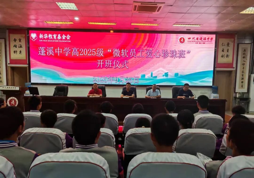 9月25日晚,蓬溪中学 “微软员工爱心珍珠班”开班仪式如期举行,一群心怀梦想的学子开启了充满希望的新旅程。学校校长杨加林,副校长、高2025级分管领导蒋洪,政教处副主任、年级主任张帆,珍珠班班主任余林及全体珍珠生共同参加活动,亲历这一温情时刻。