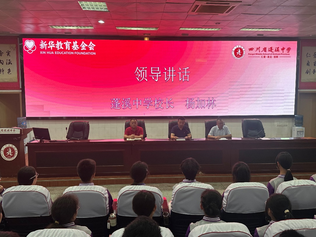 蒋洪宣读了《新华教育基金会给2025级珍珠生的一封信》。信中,新华爱心教育基金会欢迎2025级新加入的“小珍珠”们加入蓬溪中学珍珠班这个温暖大家庭,字里行间洋溢着基金会对新一代珍珠生满满的爱意、深切的关怀与无限的期待,让每一位新生深切感受到自己并非孤单前行,而是时刻被爱心人士关注着、被无私的爱心包围着。