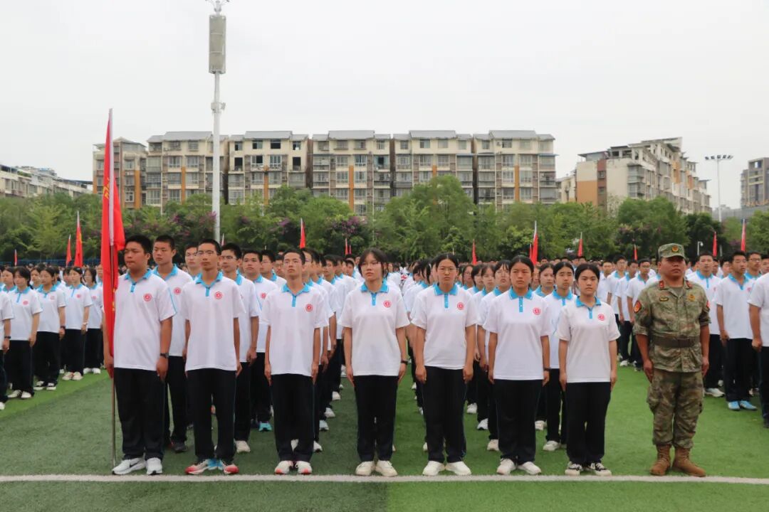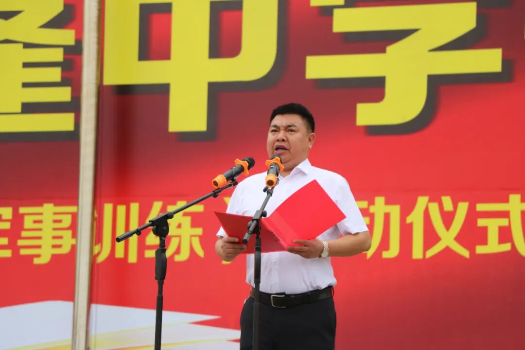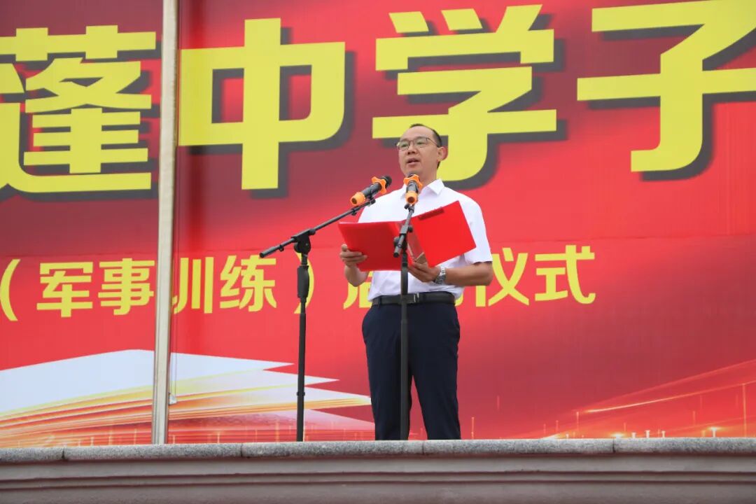 胥杰作动员讲话。他深情回顾了蓬溪中学“团结求是,追求卓越”的校训精神与辉煌办学历史,勉励新生们珍惜“蓬中人”的身份荣光,扛起责任担当。胥杰指出,军训是深刻的爱国主义教育课、意志品质的“锤炼器”、集体荣誉感的“熔炉”与良好习惯的“试金石”。他向新生提出三点希望:端正态度,以“不怕苦、不怕累”的精神挑战自我;尊重教官,严守纪律,以军人标准展现蓬中学子风貌;团结协作,互帮互助,凝结成坚不可摧的战斗集体。他鼓励同学们以军训为起点,让青春在磨砺中出彩,让人生在奋斗中升华。