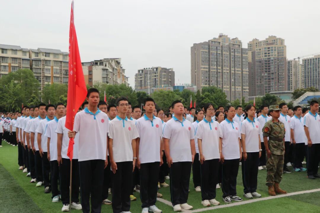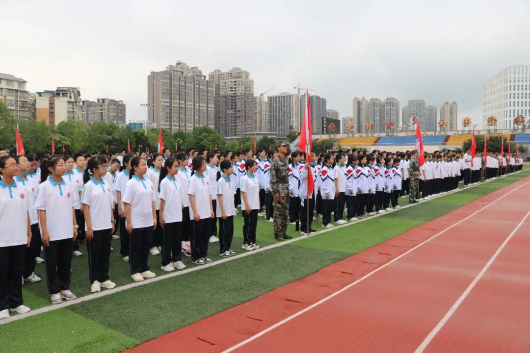九月金秋,丹桂飘香,少年意气正昂扬。9月26日上午8时58分,蓬溪中学操场上旌旗猎猎、气氛热烈,2025级新生国防教育暨军事训练启动仪式在此隆重举行。学校党委书记胥杰,党委副书记兼纪委书记冯春梅,副校长文宏宇、蒋洪,本次军训总教官钟定波出席仪式,仪式由学校党委副书记、校长杨加林主持,全体新生、班主任及教官共同参与,开启了新生们中学生涯的“第一课”。