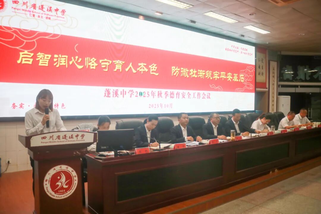 金秋送爽,丹桂飘香。为了全面落实立德树人根本任务,安排部署学校德育安全工作,10月14日晚7点,蓬溪中学2025年下期德育和安全工作会在学术厅召开。会议由团委邓伊玲老师主持,全体行政领导、班主任、年级主任、年级助理、党支部书记以及政教处、校团委、保卫科、食堂、宿舍管理人员和新进教师参加会议。