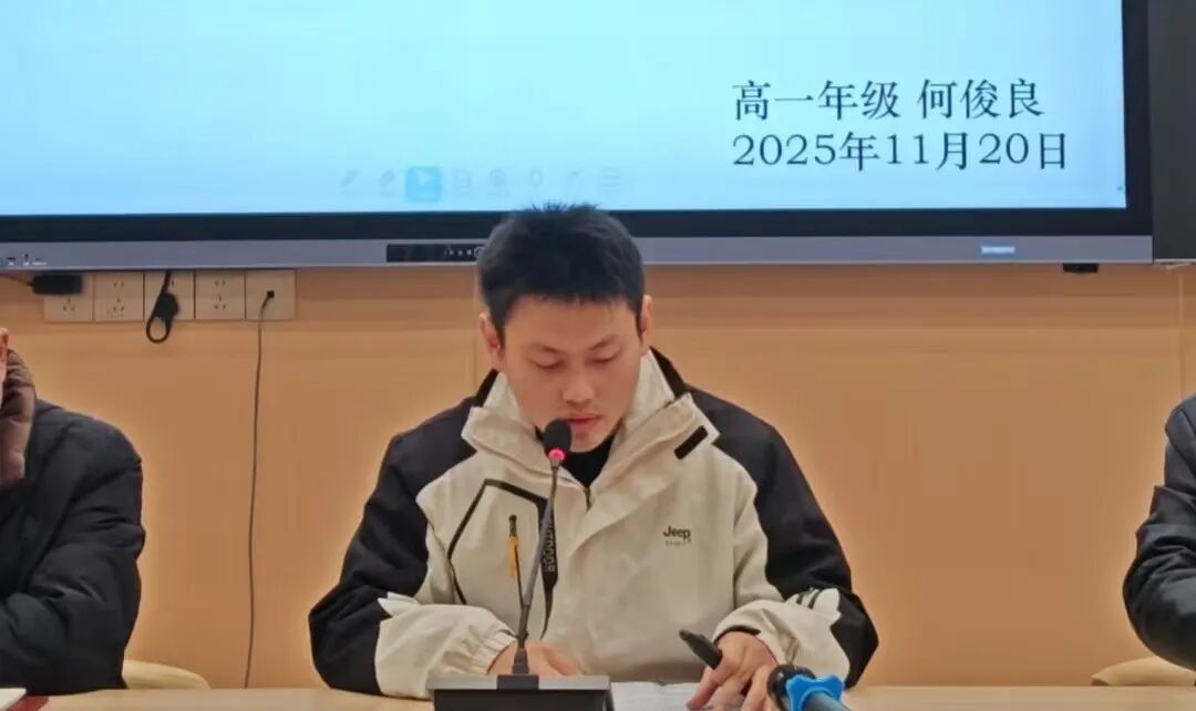 何俊良老师从课堂、班级、年级三个维度分享了他的感悟。他提出“教学魅力在于不确定性”,正是师生思维的不确定性碰撞,促成了深度学习和教师的快速成长。作为班主任,他体会到教育藏在细微处的真诚与关怀中。他深情感谢年级组“大手传薪”的温暖氛围,让“小手”得以顺利成长。