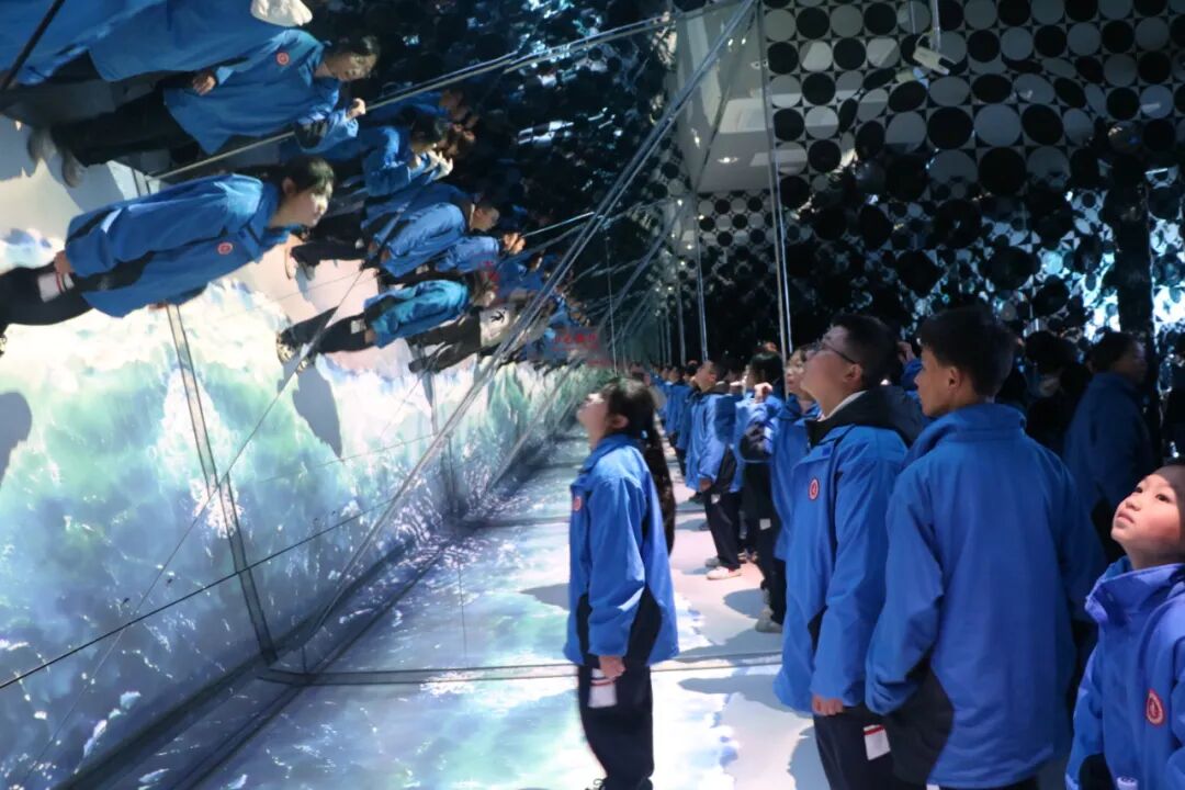 在小平故居,同学们怀着崇敬之心参加铜像广场缅怀仪式,向伟人敬献花篮。在陈列馆内,一张张珍贵展板、一件件历史文物,清晰展现了邓小平同志为党和人民事业奋斗的峥嵘岁月与推动改革开放的伟大魄力;走进伟人儿时生活的故居,古朴的陈设让同学们直观感受着伟人平凡生活中的坚守与初心,接受了一场深刻的精神洗礼。在建川博物馆,十大主题场馆如同十把打开历史的钥匙,从记录改革开放家国之变的生活改变展,到讲述四川革命故事的红色展馆;从彰显川剧魅力的特色场馆,到承载集体记忆的搪瓷博物馆,再到科技感十足的飞越巴蜀9D体验馆,同学们紧跟讲解老师的步伐,认真聆听、专心记录,在老课本的墨香中体会教育传承,在票证的纹路里感受时代转型,在多元体验中领略巴蜀大地的今昔巨变。