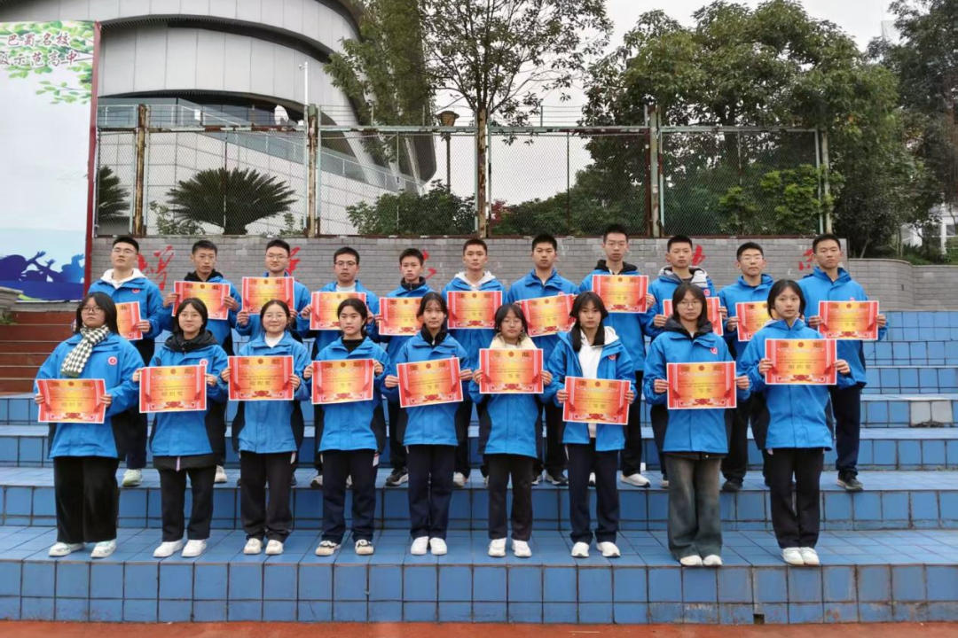 赛后在操场举行了颁奖仪式。同学们欢呼雀跃,脸上洋溢着自信的笑容。